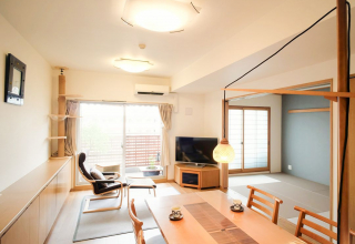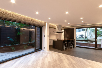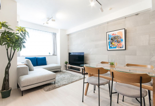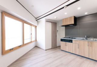 ビンテージマンションの1LDKの一室をリフォーム。お部屋の形状や梁を活かしながら内装や照明を変更し、雰囲気のあるモダンな空間をつくりました。