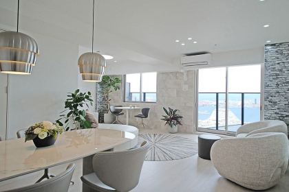 神戸の港が見渡せる眺望が主役のお住まい。その景色をより楽しめるような仕掛けを施しながら内装にもこだわり、眺望にも負けない魅力的な一室に仕上げました。