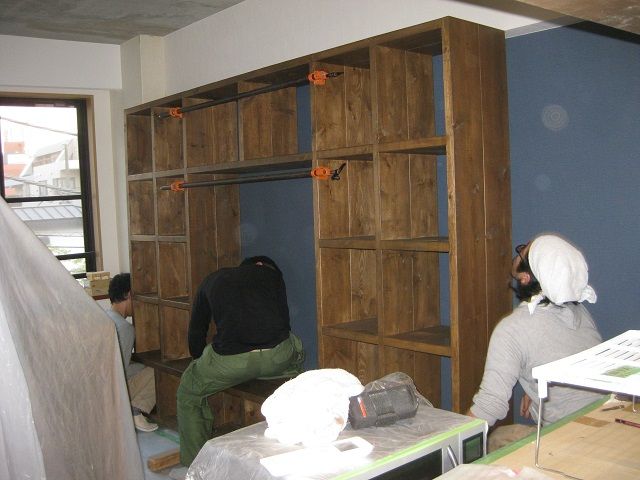 造作家具工事(3人がかりで、どっこいしょ!大きいのでクソおもてー!!)