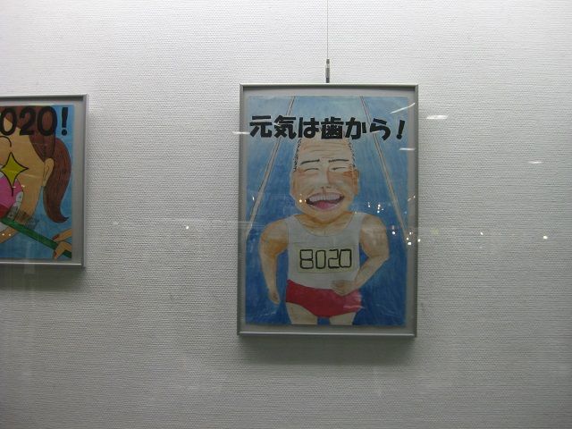 新宿駅西口広場の通路にあるギャラリーに、最高に楽しいポスターのような絵が展示されていました。目指せ8020???これは何?80歳で自分の歯を20本かな・・