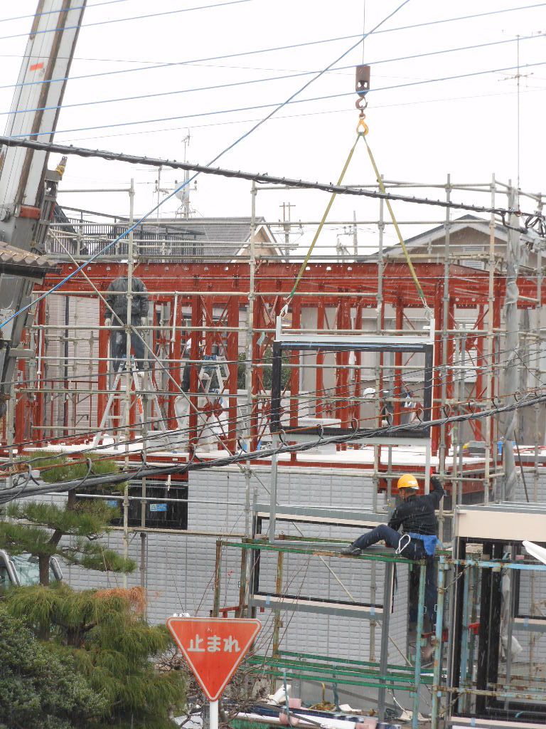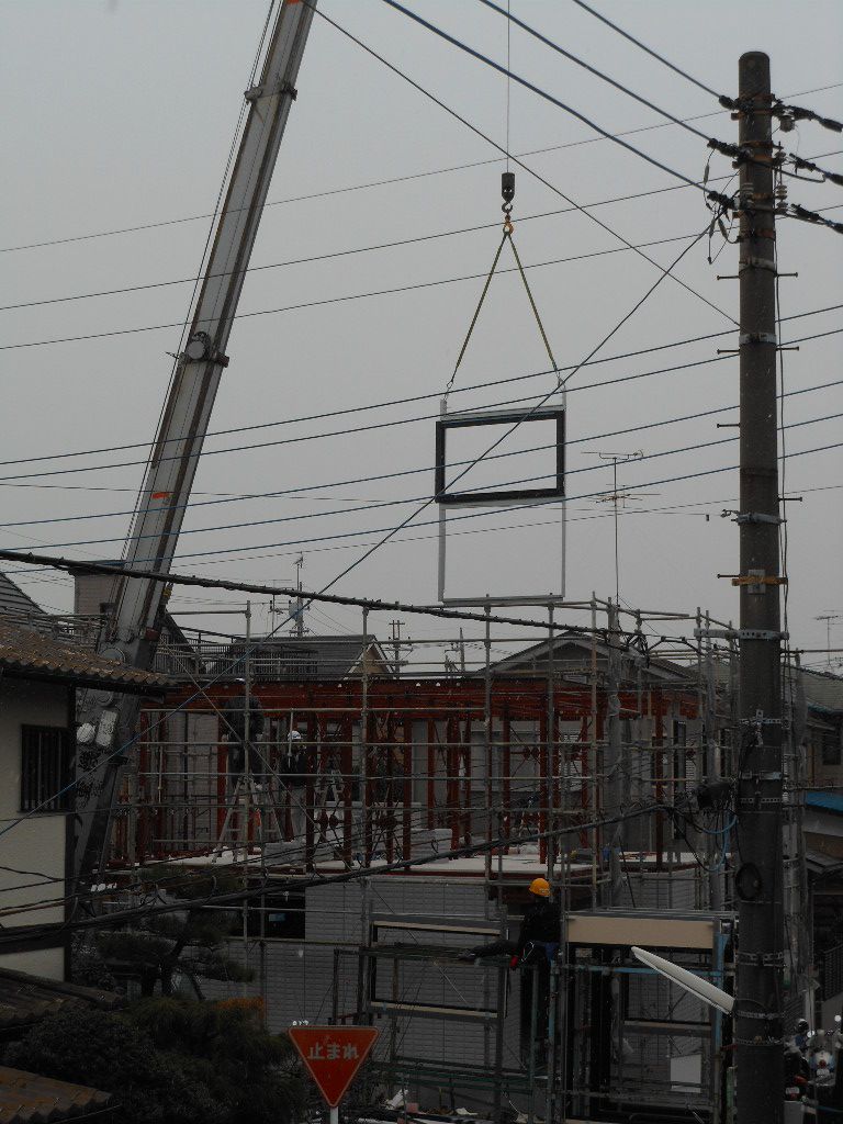 前日の1Fの外壁工事は、壁+窓+窓ガラスがセットになっていてそれを組み立てていました✨
