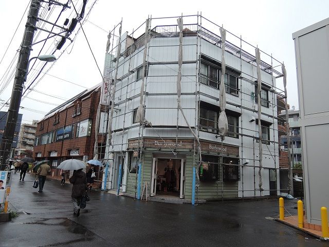 当初の予定工期は3週間でしたが、いろいろな問題やお天気事情の台風2連発!!により、倍以上の7週間足場が立っておりました。台風が来るたびネット絞り台風養生、大変でしたね岩崎さん<(`^´)>
