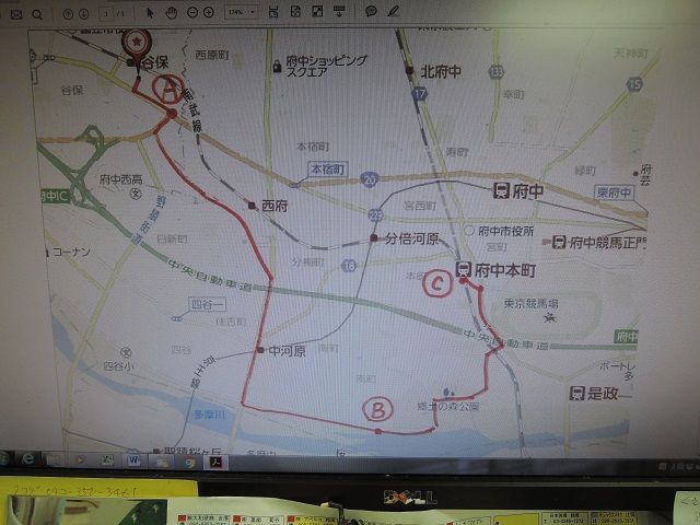 下の地図が歩いたルートで、約7㌔~8㌔でしょうか2時間たっぷり<(`^´)>