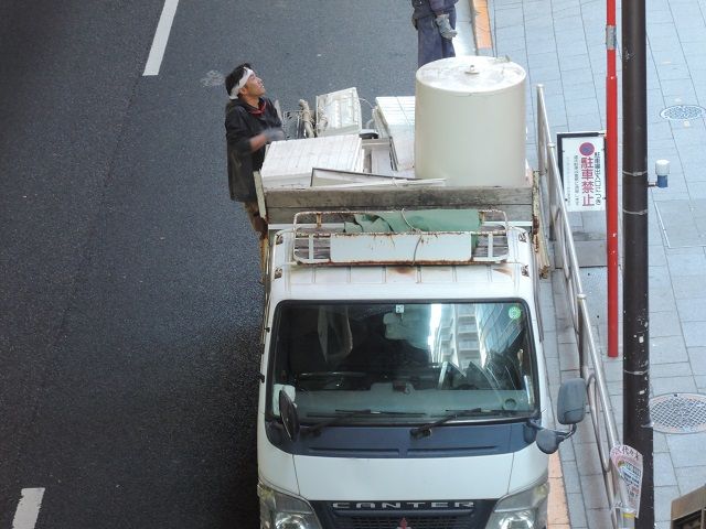 甲州街道の道端 しょうがなく路駐をして積み込み!大変なんです車から離れると駐禁おじさんにシールを貼られてしまうので人を配置!そこで登場したのは、世界でただ一人・・たいち君への理解者『永長さん』は偉い!!