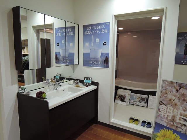 先日、当社へお届けいただき、無事にあの『LIXIL』の洗面化粧台の上に展示することができました!