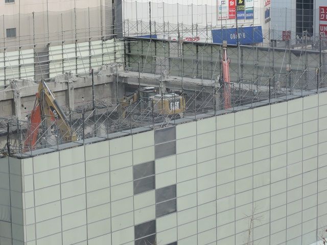 同じ位置から右を眺めると新宿駅西口ロータリーが見えます!写真左端に見える解体工事現場は、52年の歴史の幕を閉じる『スバルビル』です・・・
