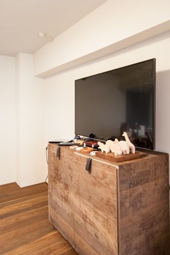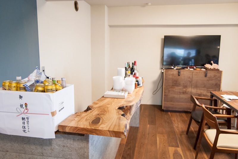 カウンターやテーブル、テレビボードなども全て自社の木材を使って造作したのだそう。