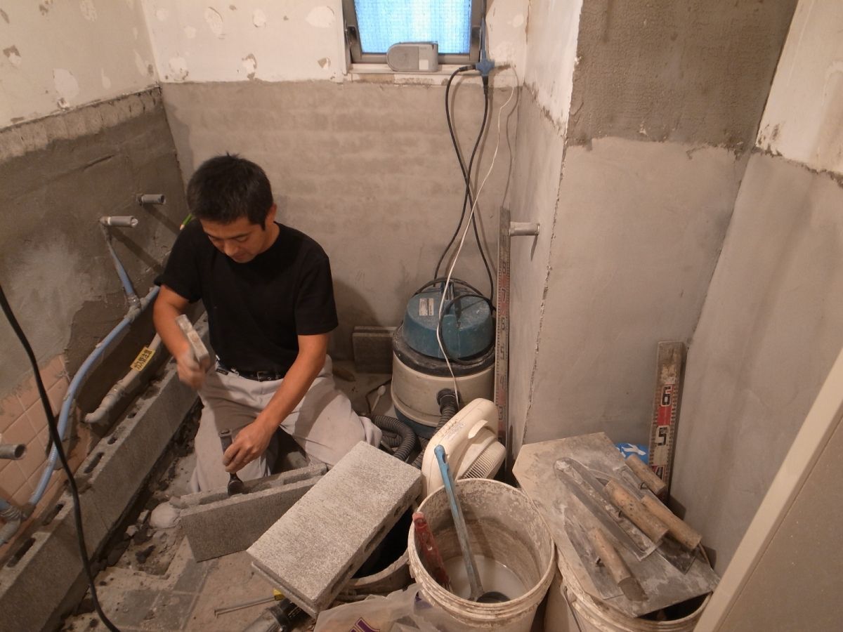 タイルと防水工事をお願いした際には、コンクリートの粉まみれになりながらも新しい方法でやってもらいました。タイルと防水ともにお客さんは大喜びでした。