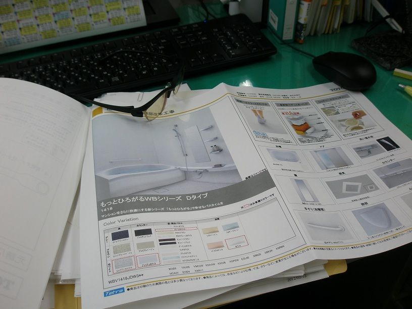 これは、お客さんと某ユニットバスのメーカーTOTO?ショールームに行き、お客さんの希望に合わせたイメージプランと定価見積書なのです。