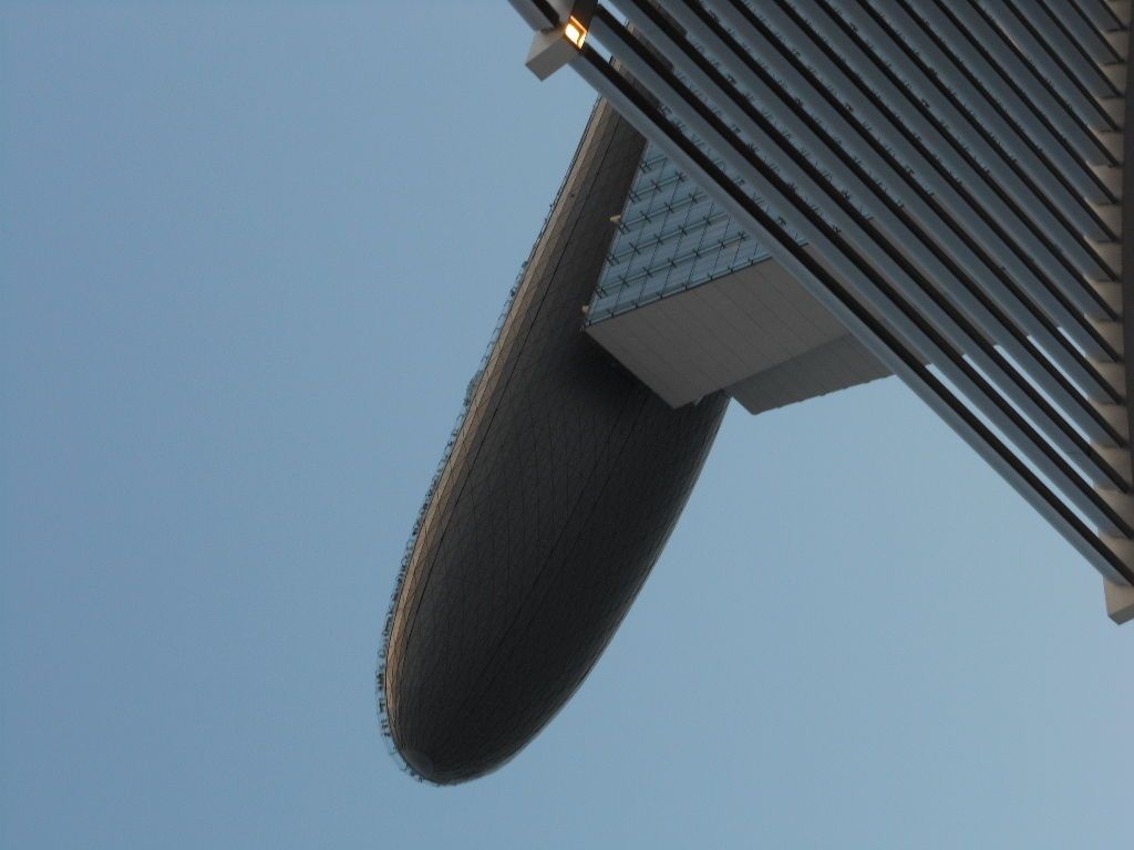 迫り出した真下からのマリーナ・ベイ・サウンズ