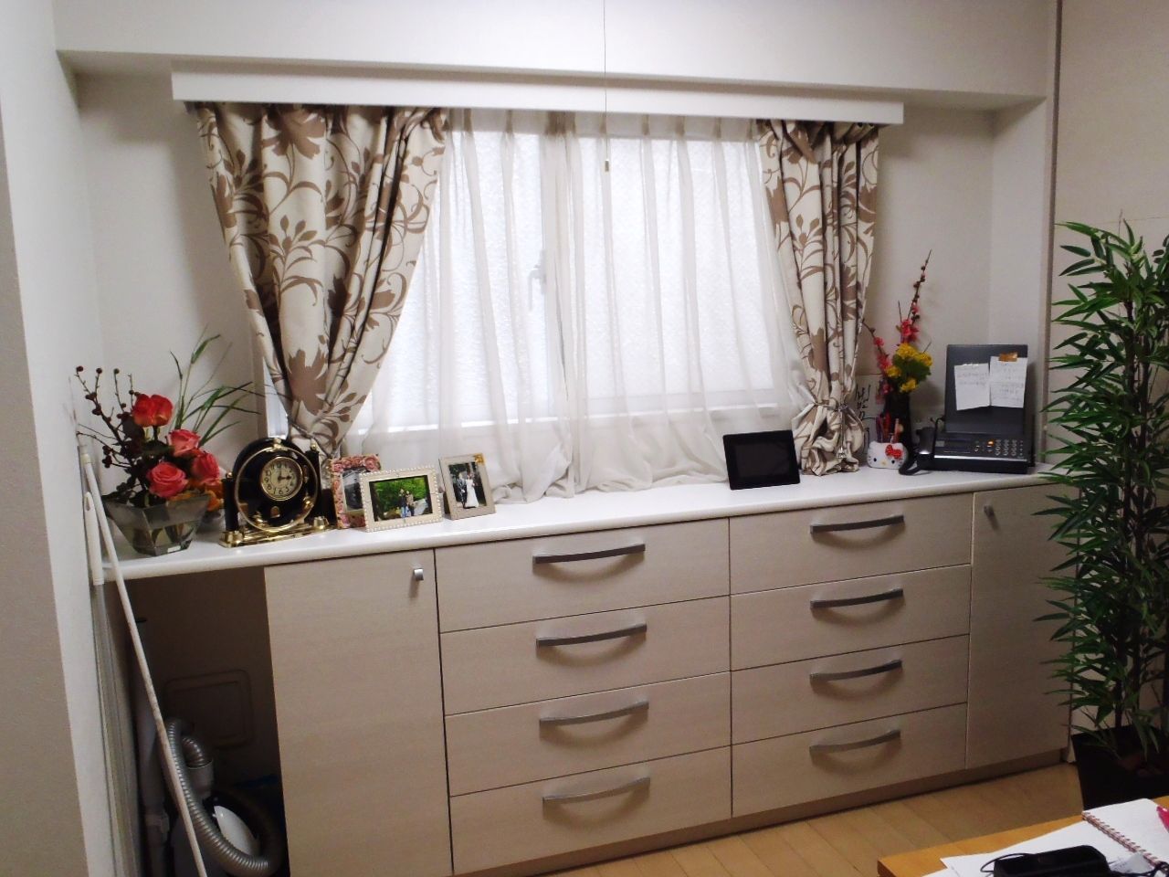 家具の奥行は、小柄なお客様が窓に手が届きやすい寸法にしてあります。造作家具ならではですね!