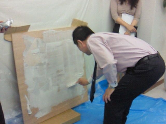 先日、LIXILと問屋のアベルコさんの協力によるエコカラットの(調湿デザイン室内用タイルhttp://ecocarrat.jp/)施工勉強会を行いました。