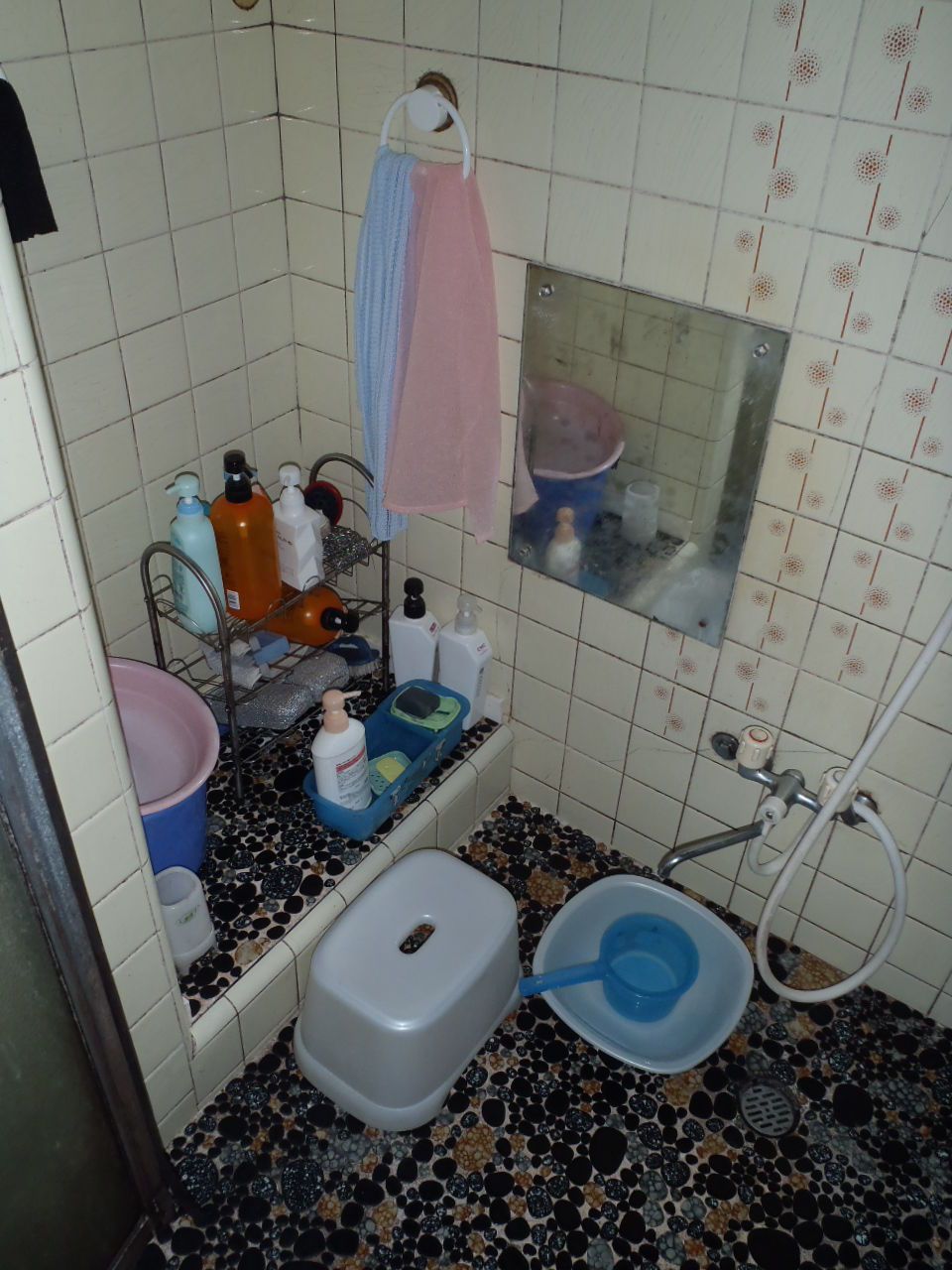 タイル張りの浴室(在来工法といいます。)から最新のユニットバスへの交換工事です。戸田市A様邸、既存の浴室です。