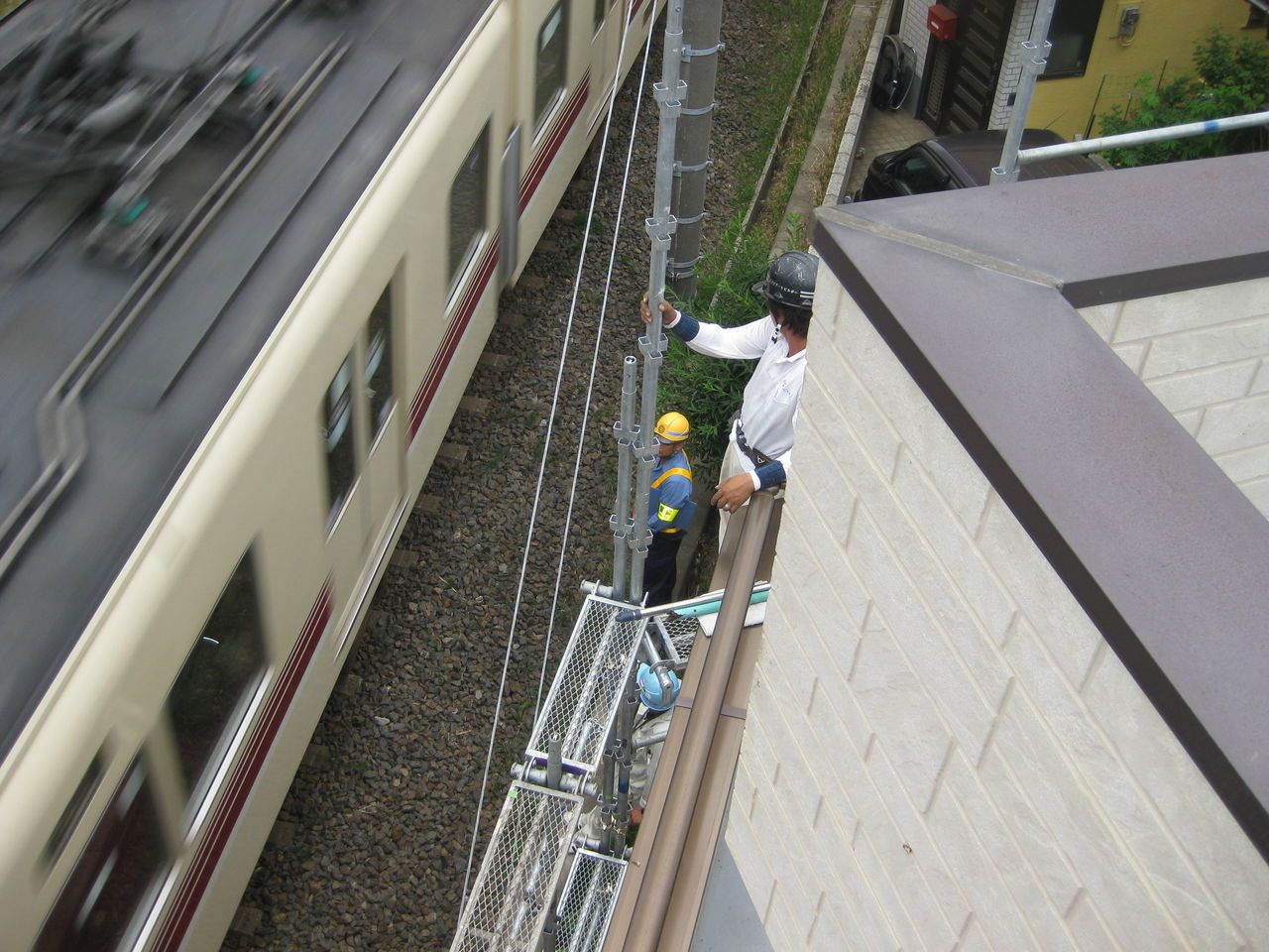 線路敷地内作業になる為、鉄道会社への問い合わせから始まり、書類での取り決めや日程の調整ですとか、また、高圧電流が流れる電車用の電線への保護カバーの取付と敷地内作業時には鉄道会社の方による立会等です(費用はこっち持ちです)