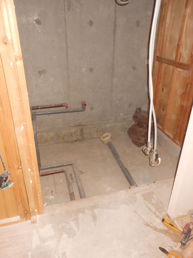 まず、解体既存の浴室を解体+周りの壁を解体します(*^^*)電気配線、水道配管を新しいUBに合わせて図面の指定位置へ持ってきます☘