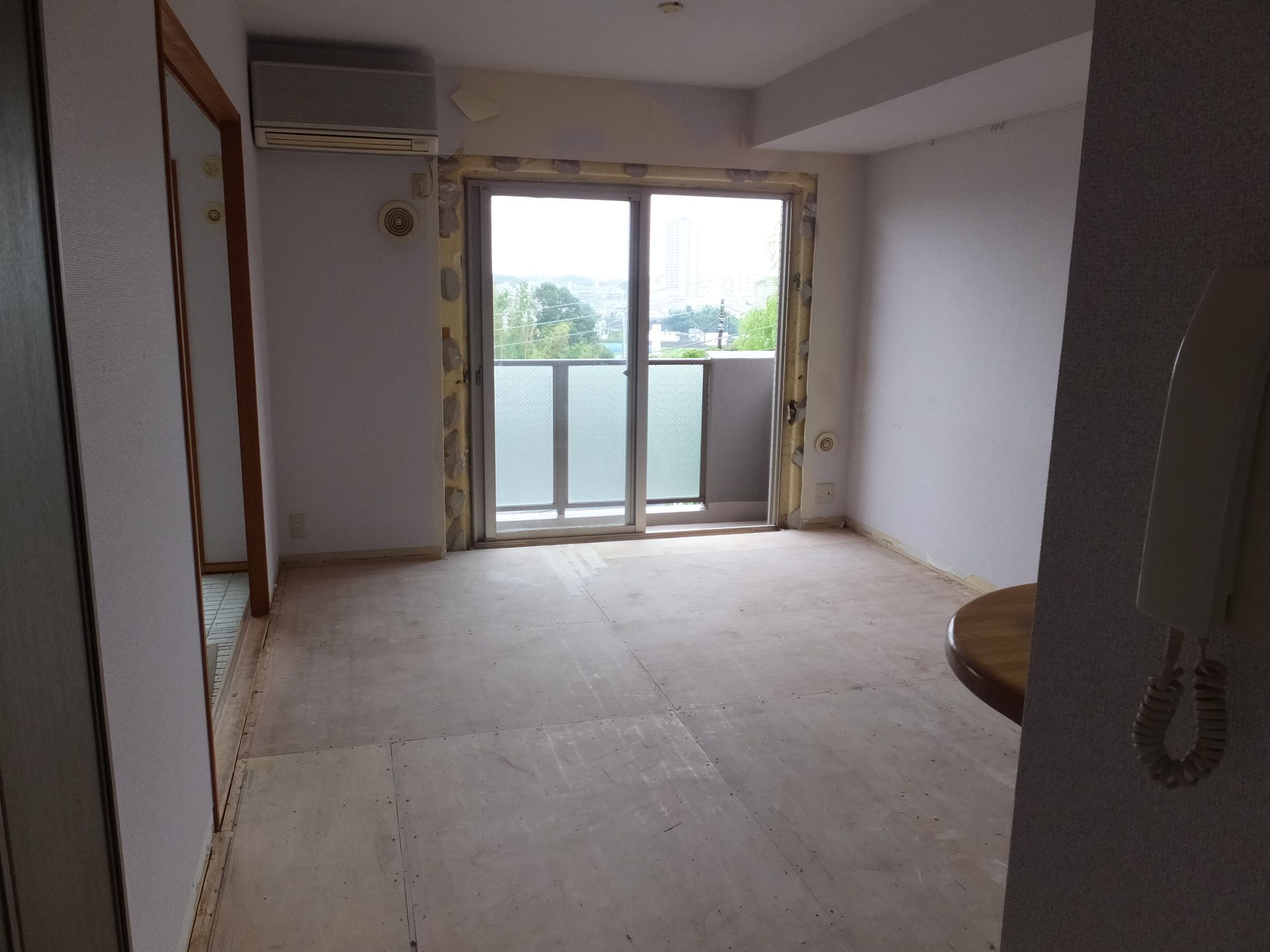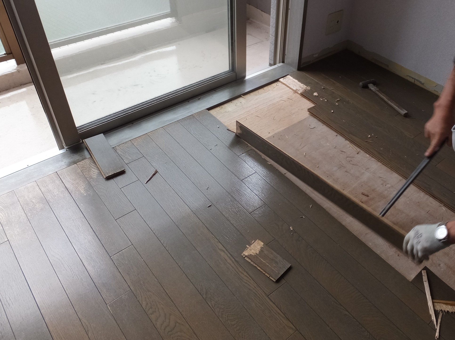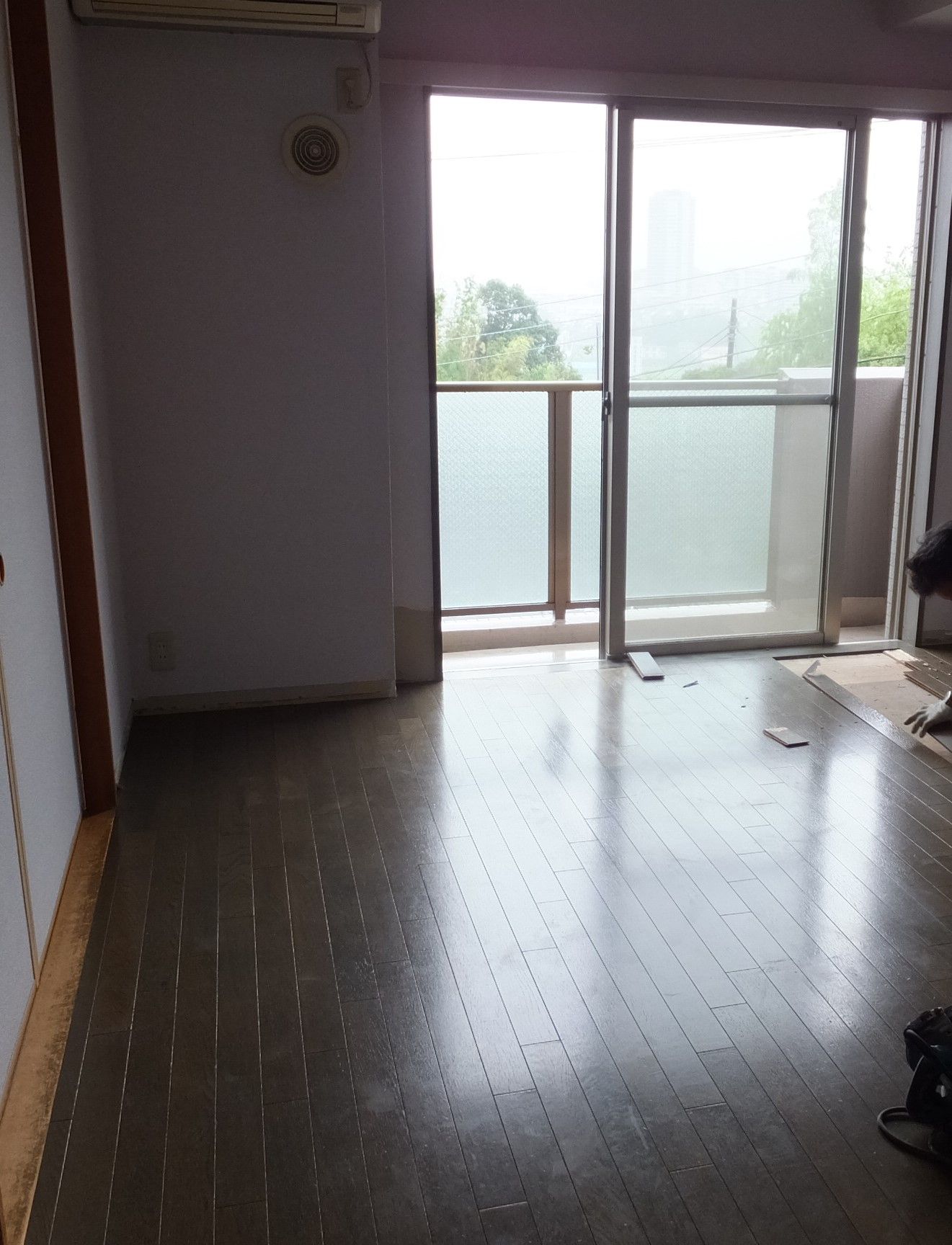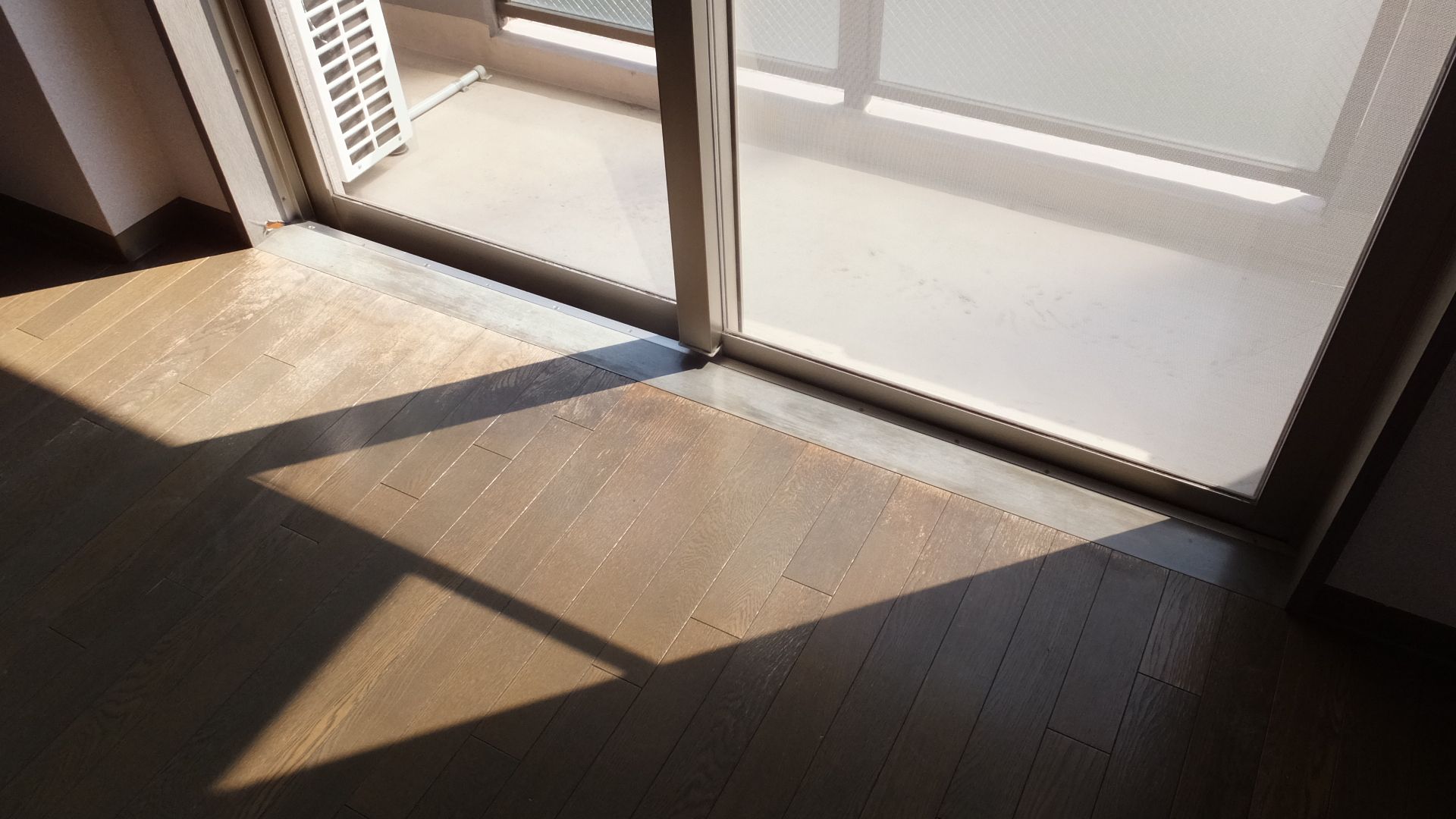 掃出しサッシ前の床が傷んでおり、フローリングの張替えとなりました。