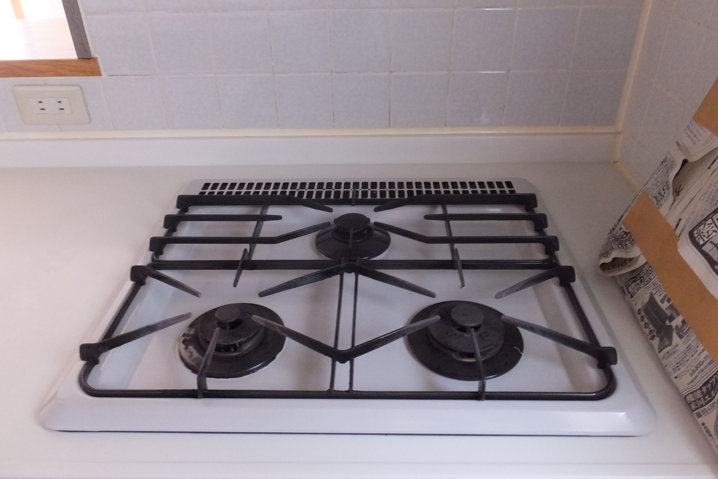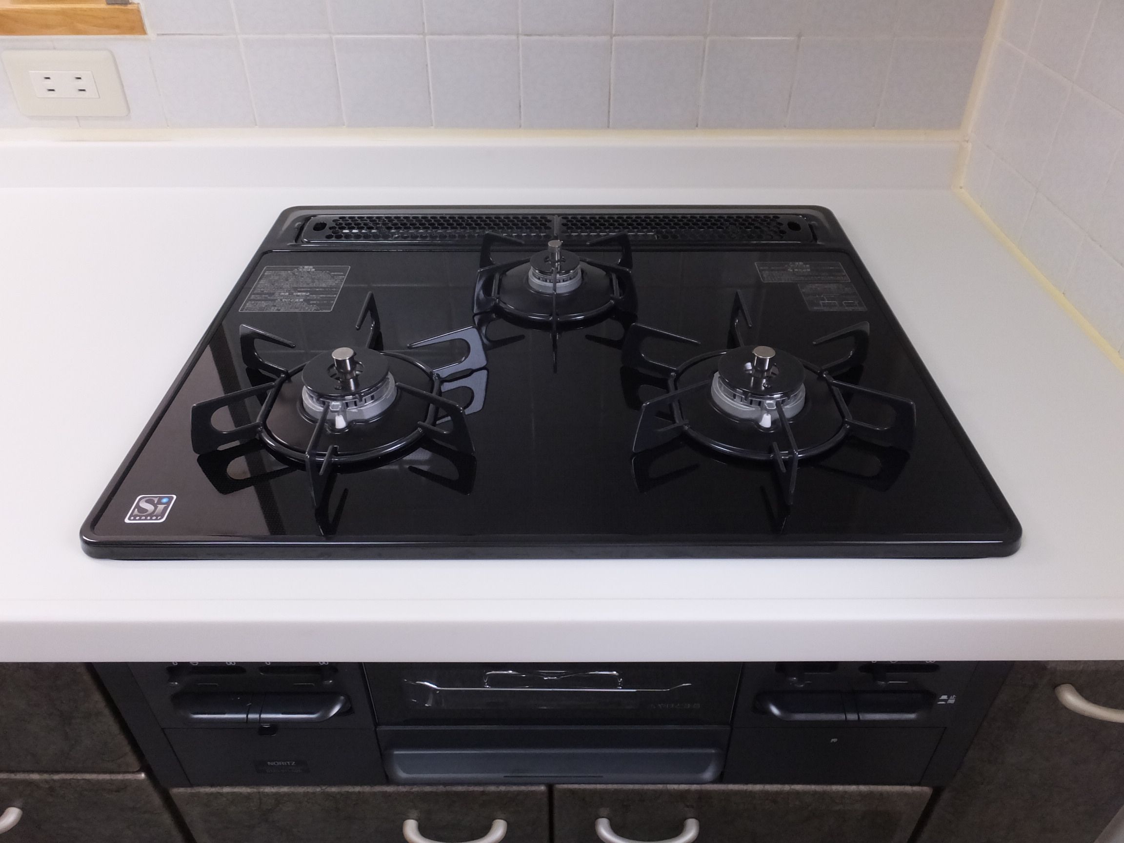 システムキッチンのビルトインガスコンロの交換写真です。ガラスTOPに交換しました。