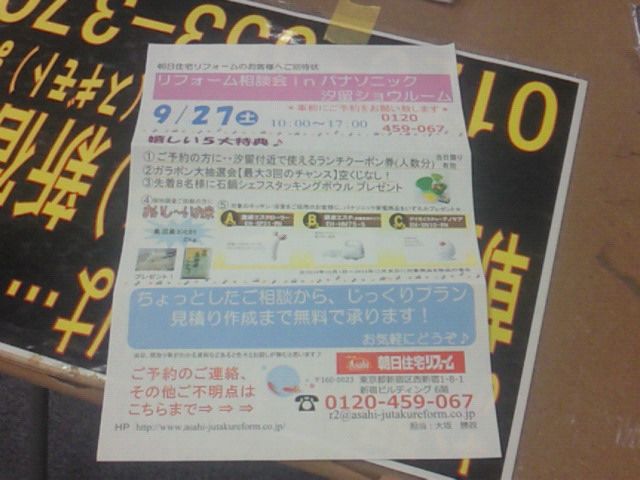 左の写真ですが・・ イベント用のチラシです!!当社ホームページでも告知紹介しているリフォーム相談会のチラシですよ!