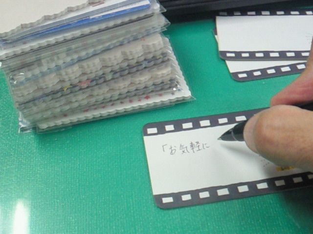そのチラシをダイレクトメールで送る際に、カードに一言書き込んでいるところです(汚い文字でごめんなさい)
