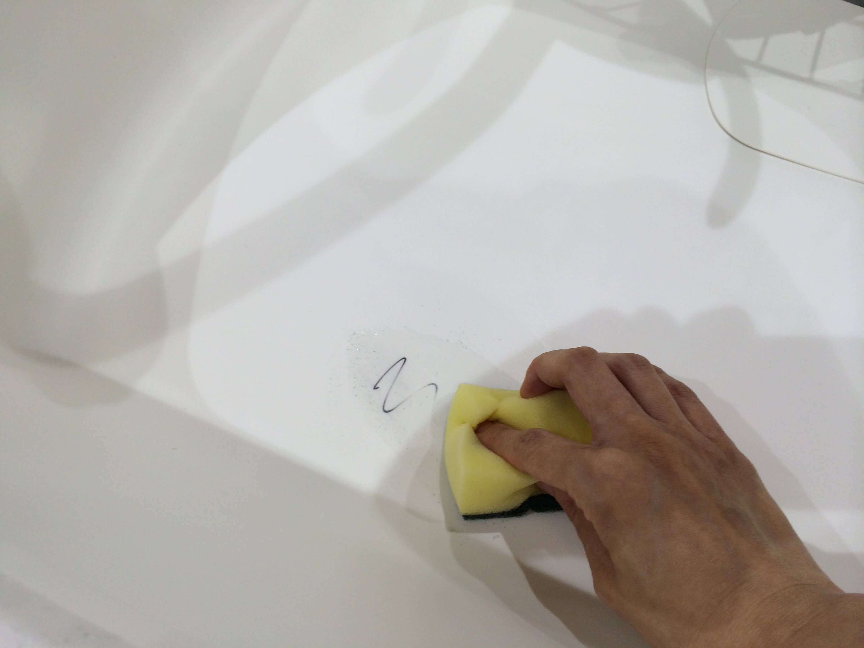 トクラスさんのキッチンシンクは、油性ペンで書いてもクレンザーで落とせるスグレモノです(*´∀`)スゴイ!!