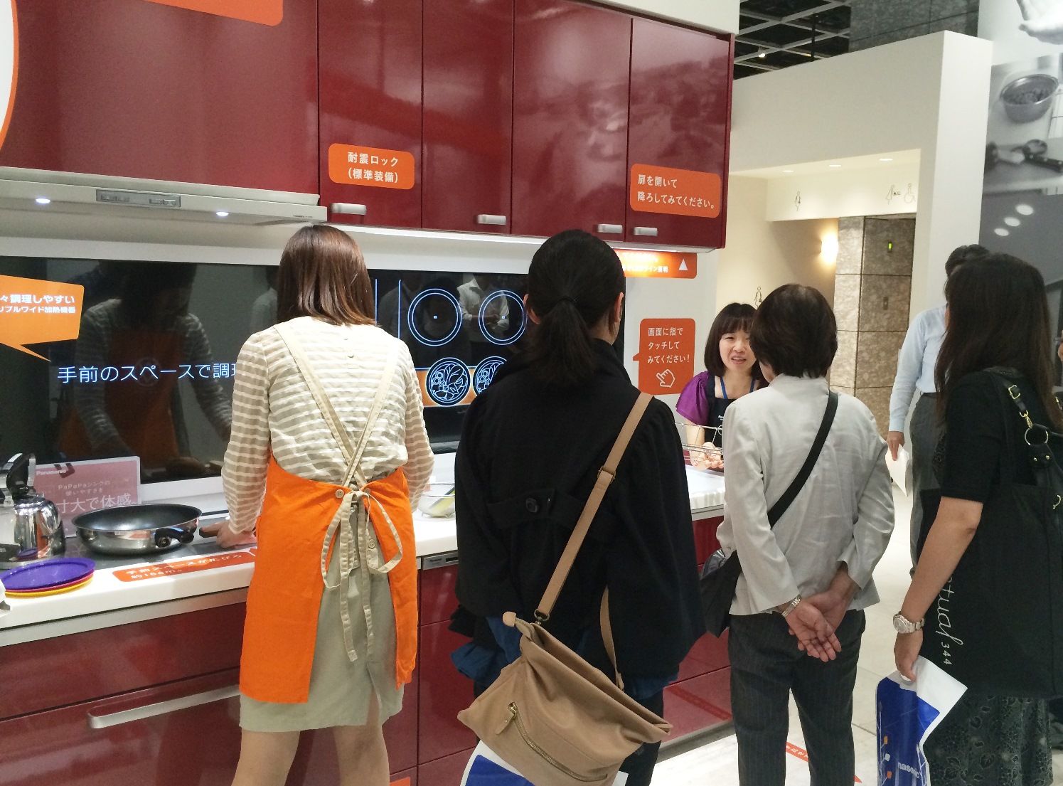 最新キッチン「リフォムス」のパナソニックスタッフの方による実演説明の様子です❗