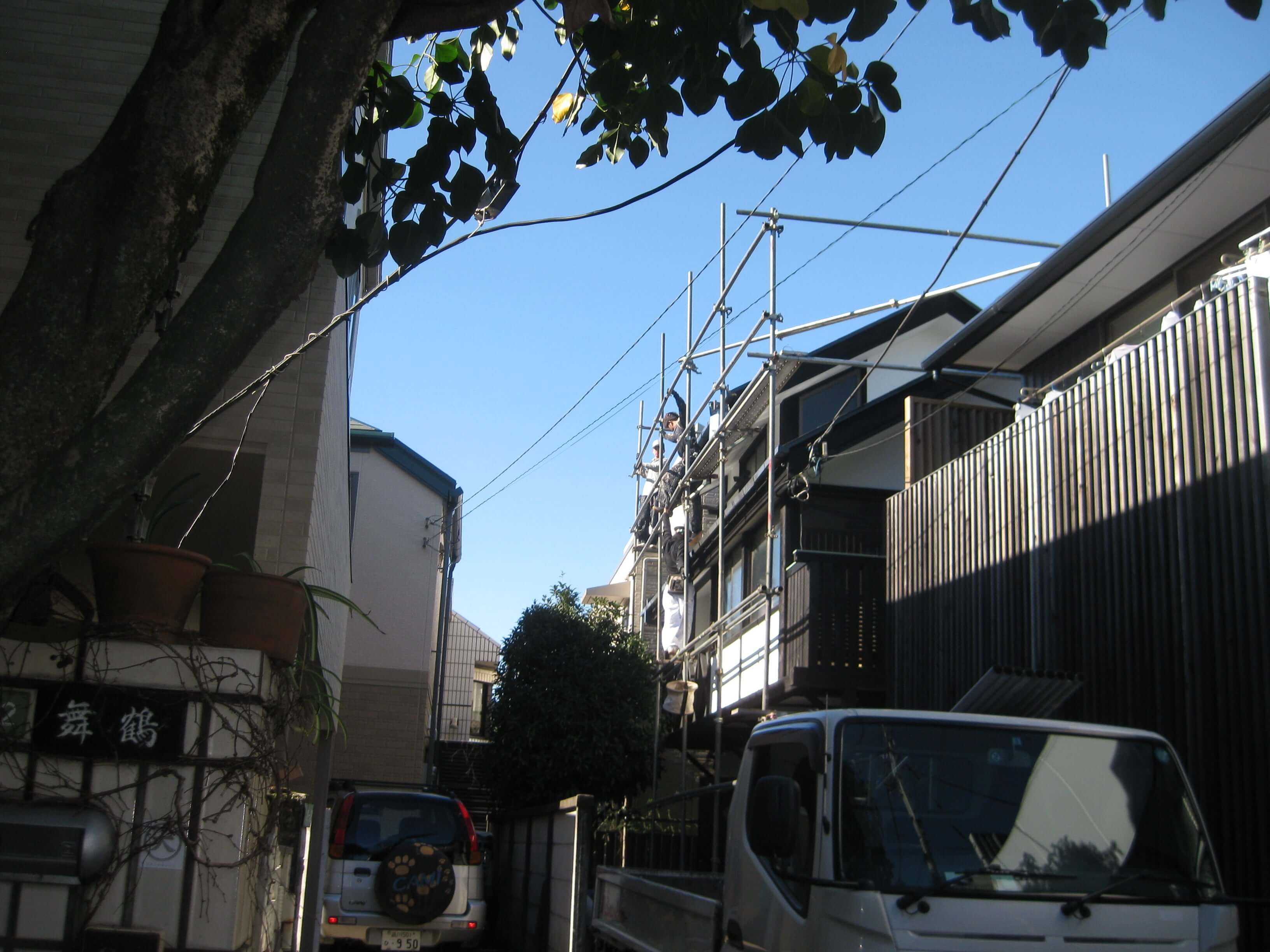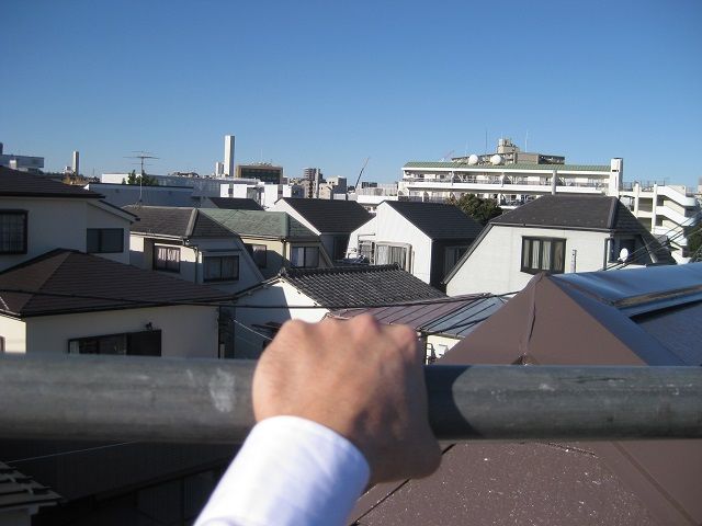 私の「先ほどとは別×2の大切なお客さん」のおうちの屋根上(足場)です。