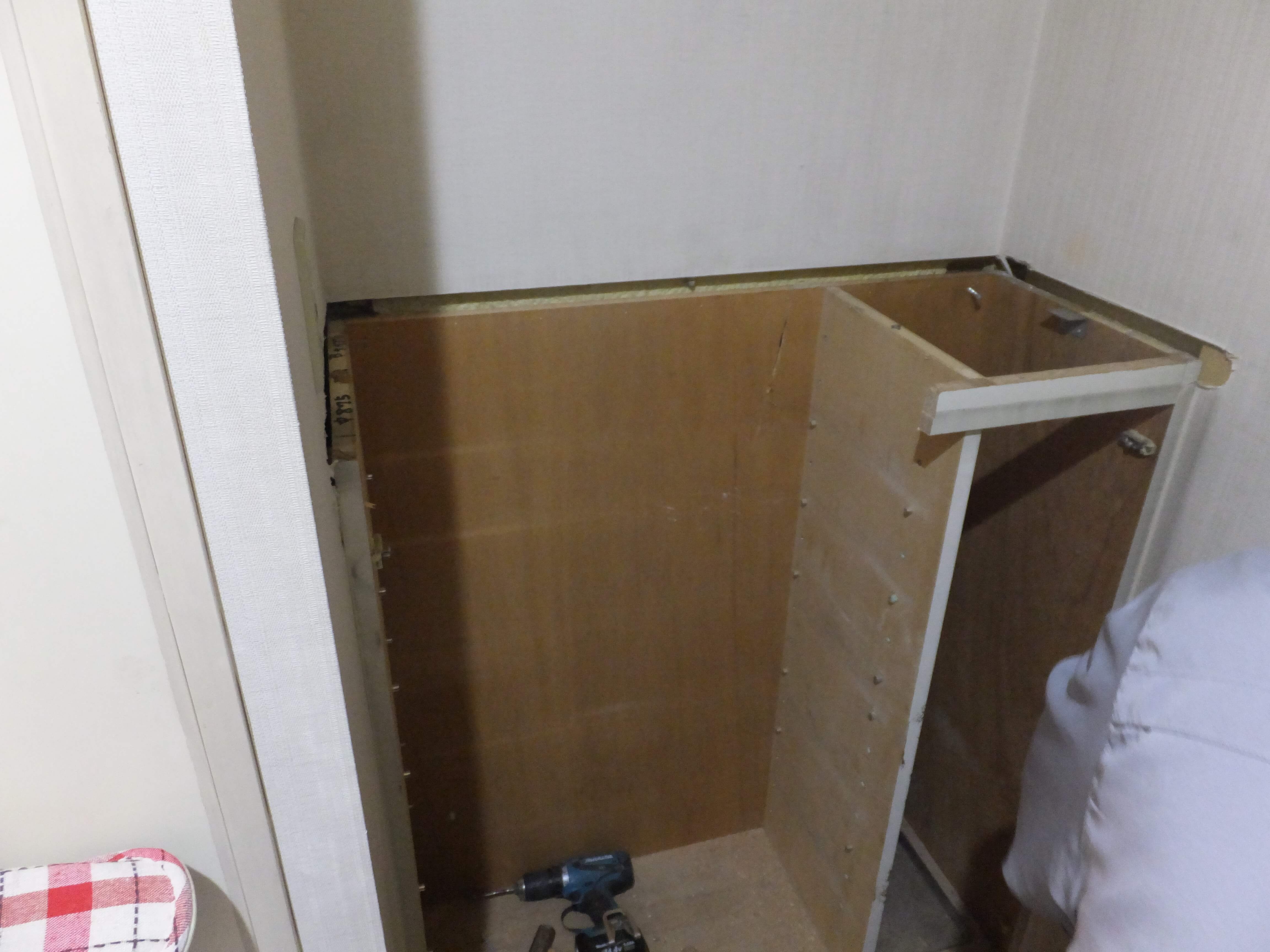 上部の吊戸棚の扉を外したところです。(左の写真)