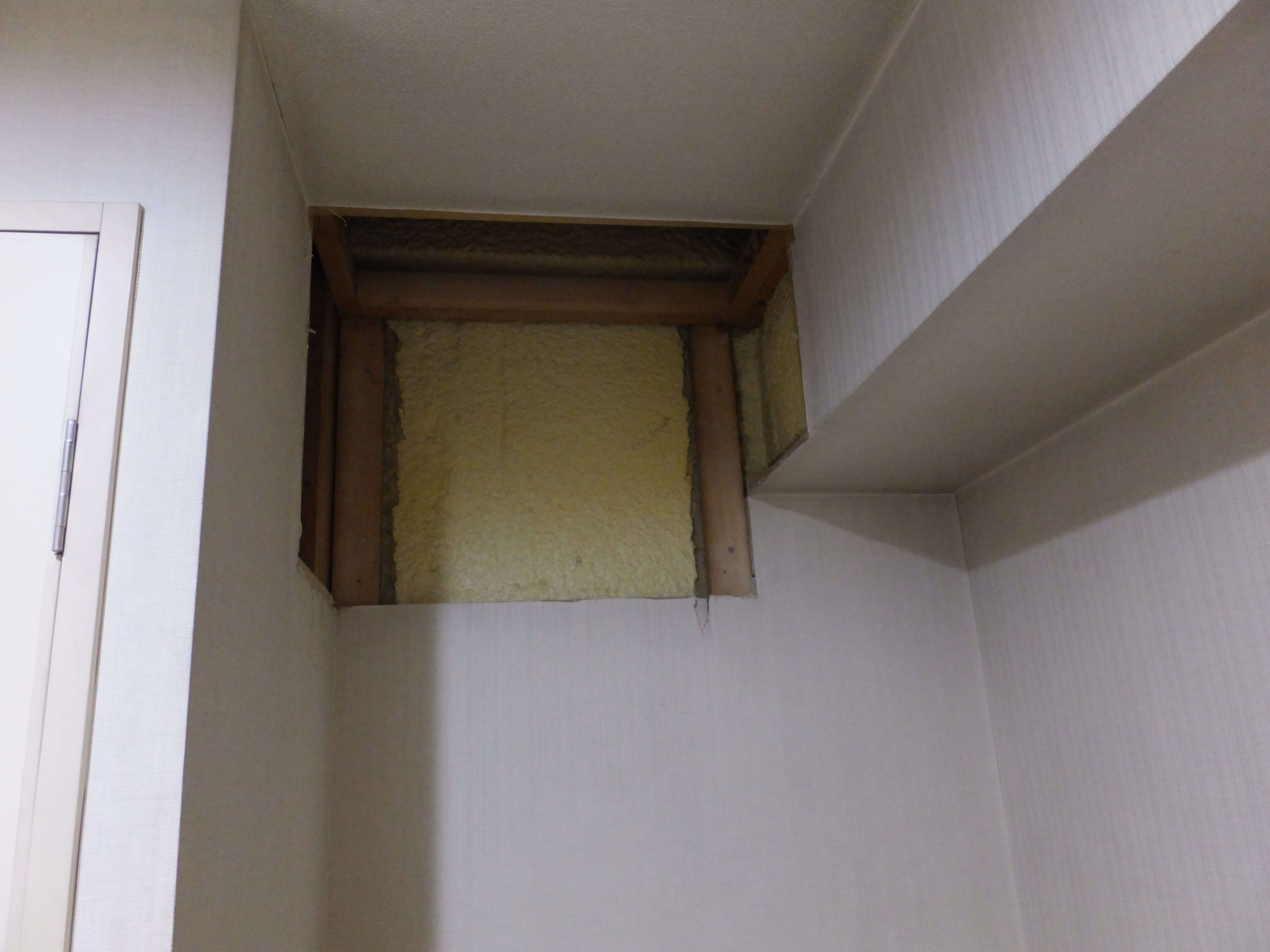 ちょうど裏が外部(EVホール)なので、コンクリート躯体に断熱材ウレタン吹付状況の下地が出てきました。