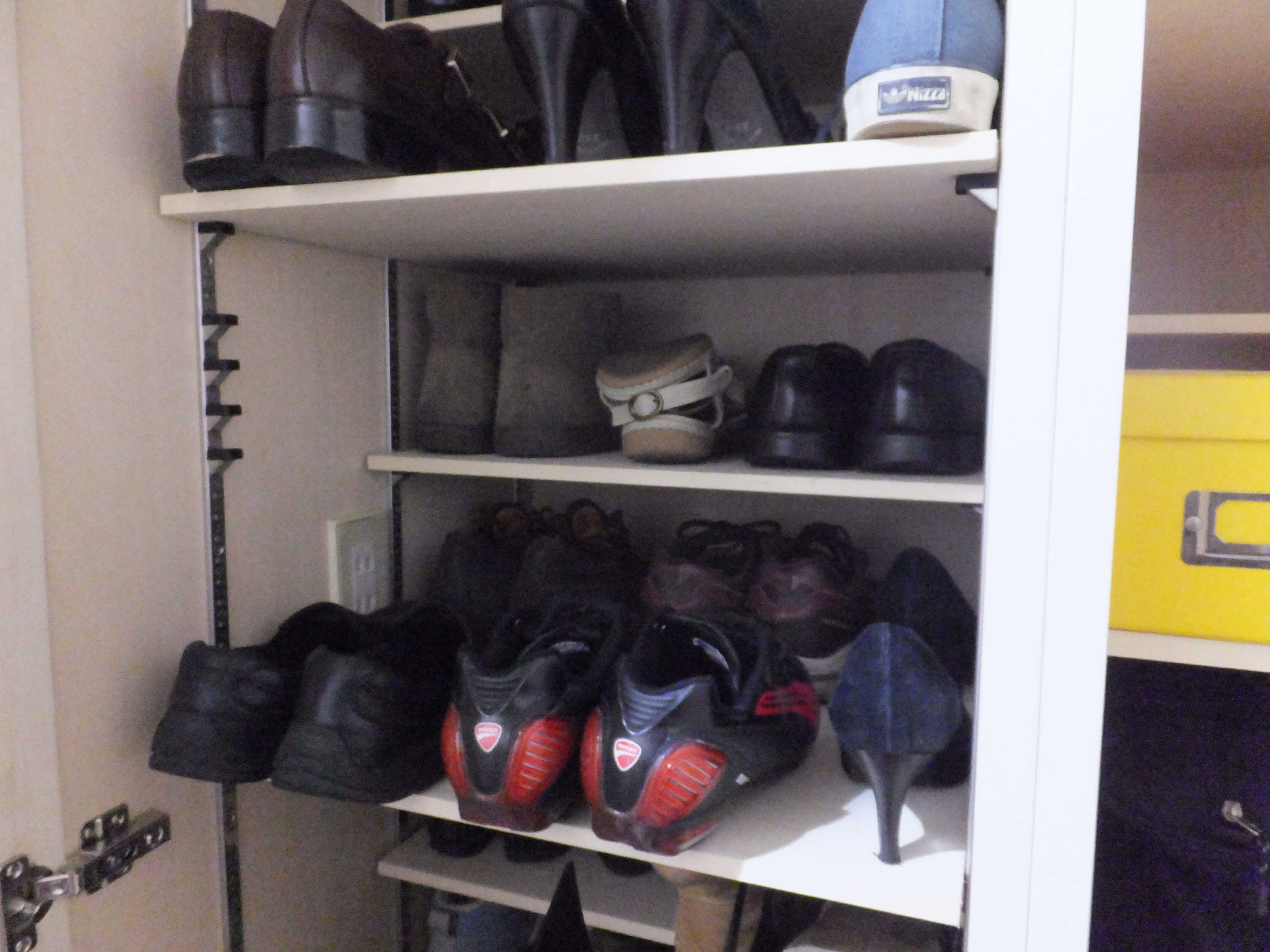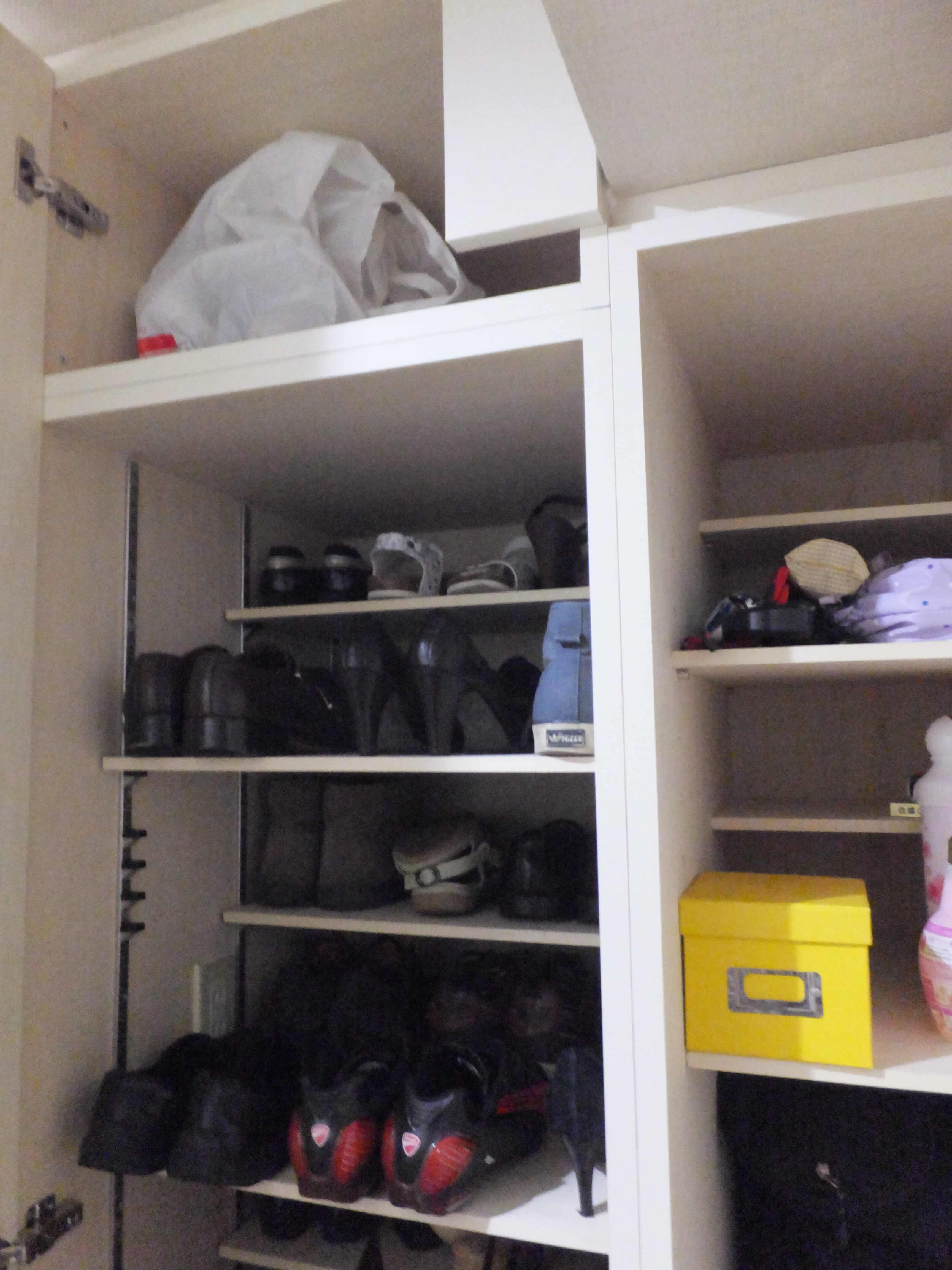 こ~んな感じです(*^^*)。棚板奥行の広い方は、手前と奥で2列靴が置けま~す♪。