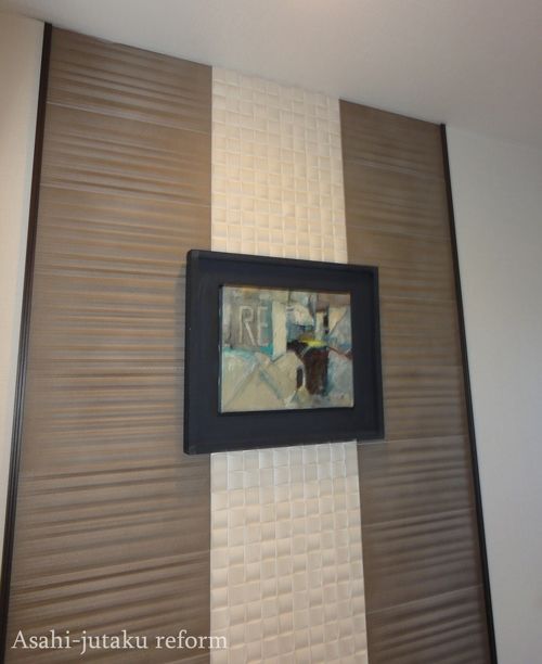 玄関に調湿タイルを貼る場合は、貼るだけでもいいですが、タイル貼りの壁にダウンライトを配したり、ニッチを作ったり、ピクチャーレールを取り付け絵を飾るなどするとお客様をおもてなしするにふさわしい美しい空間になります。