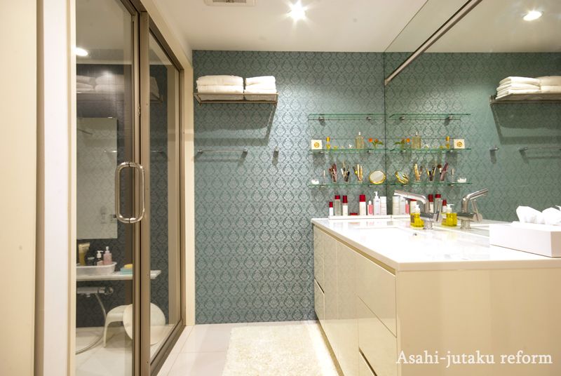 このリフォームでは洗面台や床などは変えていません。壁紙で全く表情が変わることがおわかりいただけたのではないでしょうか。これが壁紙リフォームの効果です。