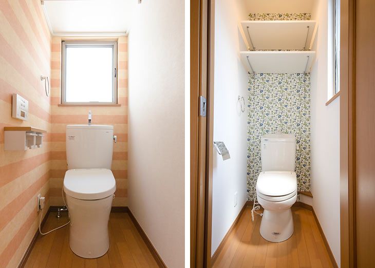 同じお家の1階と2階のトイレです。それぞれ違う柄の壁紙を採用し、異なる雰囲気になりました。