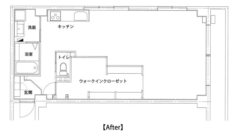 家族が多いとなかなか難しいかもしれませんが、一人暮らし、二人暮らしの場合はこのような大胆な間取りもアリなのではないでしょうか。