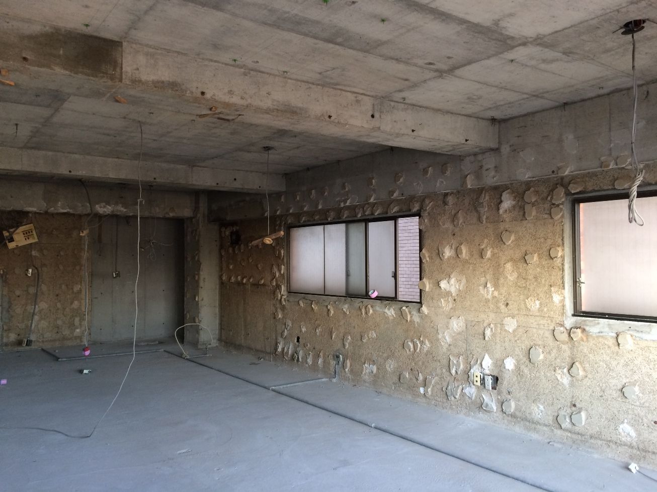 壁や天井材を取り払い、一度スケルトン状態にしています。