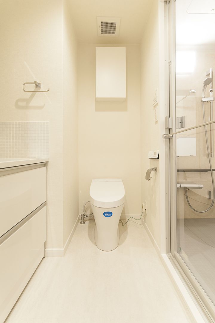 一方、将来介助が必要になったり車いすを使用することを考えトイレと洗面空間を一体にする方も。広い空間なら介助もしやすく、洗面台やお風呂場などが近くにあれば汚れた時にも対応しやすいですね。