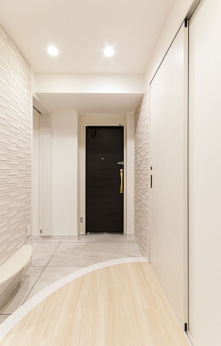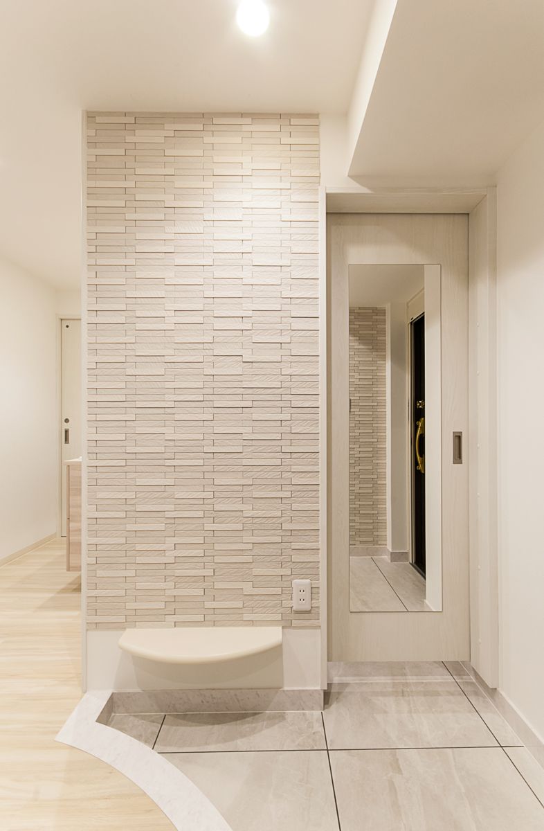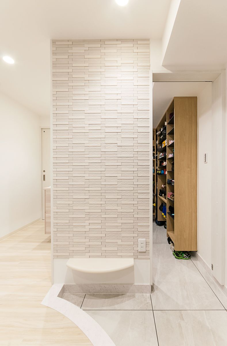 玄関部分は両側の壁に「エコカラット」というインテリア建材を貼りました。