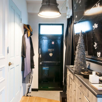 あと今回はドアがキーポイントなの。ドアがパリと同じだとなんとなく落ち着くというか。だからドアは全部フランスで使われていたドアを探して買いました。ちなみに、この廊下とリビングの間のドアは、パリでは建物の入口部分のコンシェルジュがいるところのドアなの。誰か来た時に、コンシェルジュがガラスを空けて、「どなたですか」って聞くんです。本物のオークのドアで、元は白く塗装されていたんだけど、塗装がない方がいいと思って私が全部削ったの。美しいドアよね。やっぱりこれがパリの仕事。だからなんかね、このドアがあるとパリの風情を思い起こさせてホッとするの。