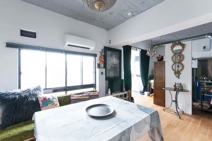 これまでパリに30年ほど住んでいて、その前は6年ニューヨークにいました。日本にいる高齢の母の面倒を見るために帰ってきたので、住むところを見つけなくちゃいけなくて。でも、日本の建物ってフランスと比べてペラペラなの。向こうって全部が石とかで出来ているきちんとした建物なんだけど、日本のマンションはどうも手を抜いて作られている感じがして、こんな建物に高いお金を出したくないなぁと思って、安い物件で、でも気持ち良さを感じる住まいを探しました。このマンションは築60年だけど、すごく丁寧に造られているところが気に入って購入しました。無骨な印象だけど、小津安二郎の作品に出てくるような昭和のいいものが感じられた。気持ちのよい、本物の建物だったんです。