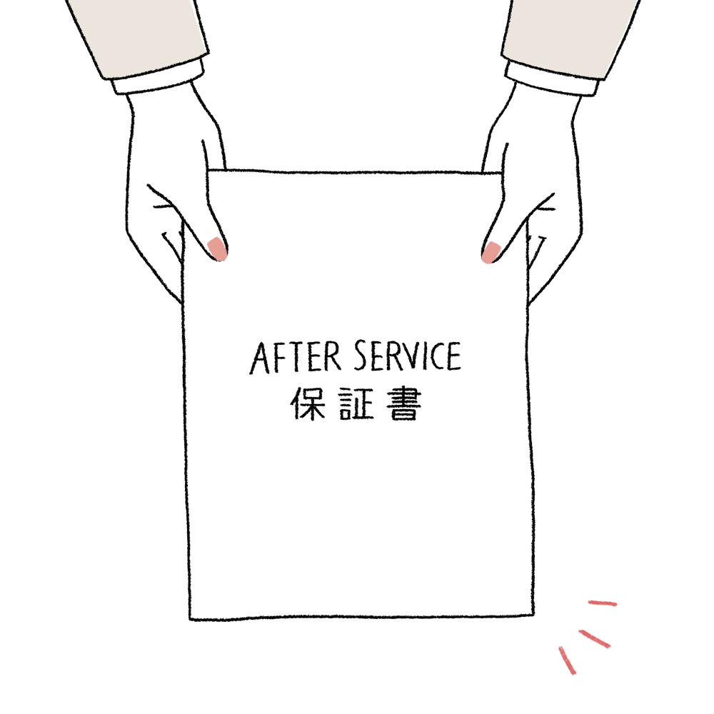 安心してお住まいいただくために、お引渡し時には保証書を発行。お住まいになった後でも不具合など気になる点があればご相談ください。