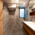 そこで長いカウンターの洗面台を撤去し、フロートタイプの洗面台を設置することで圧迫感を払拭し軽い印象を出しました。洗面台はADVANのモビリスタフロート。フロートタイプにすることで少なくなった収納スペースはミラーキャビネットや洗濯機上に可動棚を設置することで補っています。