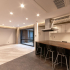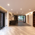 壁は白で塗装をしていますが、はつり仕上げとなっていた梁や柱はそのまま活かすことにしました。照明はこれまでダクトレールの照明が付いていましたが、ダウンライトに変更しています。さらには四辺にコーニス照明を設置。梁に照明が当たることで石の凹凸が浮かび上がり、より陰影が感じられるように。モダンな表情を見せるリビングダイニングに仕上がりました。