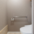 トイレはウォシュレット部分を交換し、内装の変更を行いました。床にはホワイト系のヘリンボーン柄のクッションフロアを張り、壁紙はワントーン落としたグレーを選びました。壁にL字に貼られていたエコカラットは前面のみ残すことで、エコカラットの持つ機能性を保ちました。