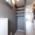 かつての3点ユニットバスは、シャワーブース・独立洗面化粧台・トイレにそれぞれ分離し、生活動線を改善。日常使いにおける使いやすさを最優先に設計されています。限られた面積の中で、いかに多くの収納を確保できるかという点にも重点を置き、お客様とお打ち合わせを重ねながら、スペースを無駄なく活かしたレイアウトに。機能性だけでなく、モノトーンを基調にした設備や内装デザインにより、コンパクトながらもセンスが光る空間に仕上がりました。