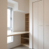 寝室にはたっぷりのクローゼットと、またまたM様こだわりの造作家具。収納とデスクカウンターを組み合わせた簡単なものですが、寝室の一角が素敵な書斎になりました。ベッドの後ろに飾った絵などをライトアップするよう、照明も計画しました。