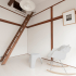文京区の風情ある街並みの中、小さな一戸建てをスケルトンリフォームしました。限られた空間に、1階は高天井のギャラリースペースにキッチン・ロフト、2階は水廻り・居室、さらに小屋裏収納を高さ関係を工夫しながら納めました。