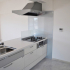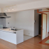 広くすっきりとしたLDKにしたいというご要望にお応えして、キッチンはカフェタイプを採用しました。吊戸棚もない開放的なキッチンです。床にはマーブル調のフロアタイルを採用したことでシンプルなだけでなく、メリハリの効いた空間となりました。