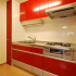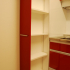 アクセントカラーとしてU様お好みのレッドのシステムキッチンを選択しました。左側には余ったスペースを利用し、キッチンに合わせて扉を塗装した造作収納を設置。手前にスライドする形にしたことで、限られた幅でもたっぷりと収納できます。