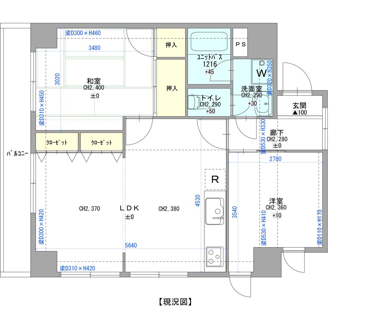 和室を含む3DKから、広々とした1LDKへ間取変更しました。