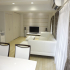 以前の洋室があった空間をリビングとして取り込み、独立していたキッチンの壁を取り払うことで広々としたリビング。天井が低めでしたので、カラーは白を基調として空間に広がりを持たせました。壁の一面に貼った調湿性のあるタイル「エコカラット」が空間のアクセントになっています。また、リビングにはお仏壇を置くためのスペースを設けました。シンプルモダンなリビングとも調和する仏間となりました。