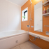 色やインテリアにこだわりのあるS様ご夫婦。初回お打ち合わせから着工までの期間が短かったのですが、お打ち合わせをしっかりとし、色決め等もサンプルを取り寄せて行いました。ご夫婦がお選びになった鏡や照明器具もお部屋のアクセントになり、素敵な空間に仕上がりました。